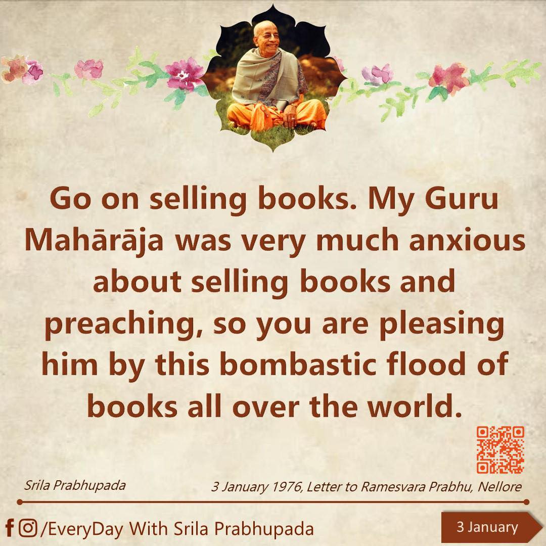 But the most amazing part of all is this: with just a short association with the holy names and with one form of Krishna, she completely transformed. On her own, without being asked, she decided to distribute two Bhagavad-gitas to two people. She told me: “I had to talk to them and give them a Gita. I really felt they needed it. It was like an intuition — I was sure it was right.” Yesterday, she distributed her first two Gitas, without any help, advice, or instruction from anyone. It happened naturally. So let us all together flood the world with prasadam and Krishna-katha. Let us chant, dance, and celebrate together✨✨