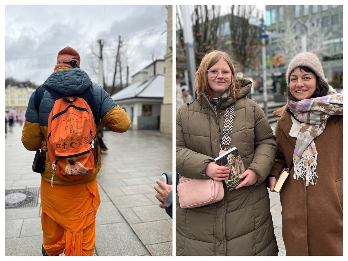 I met a nice gentleman who told me that he had received the Bhagavad-gita from me last year. He liked it, and we talked a little about the subject. Then, I suggested that he buy a Bhagavad-gita today as well and that he could give it to someone, because Krishna says in the Bhagavad-gita that he who gives Him to others is very dear to Him (this I learned from Vaisesika Prabhu). So he said, "Yes, I will give it to someone," and he made a very generous donation. Usually, people decline this offer and say that they do not know to whom to give the book. But since someone said yes, I became curious and asked him to whom he would give it. He said he would give it to Støre, and Støre is the Prime Minister of Norway. He said that he would meet him tomorrow at the annual meeting of the Norwegian Business Association, where the Prime Minister was scheduled to come and give a talk. He walked away very happily and thanked me a lot for the work I was doing.
