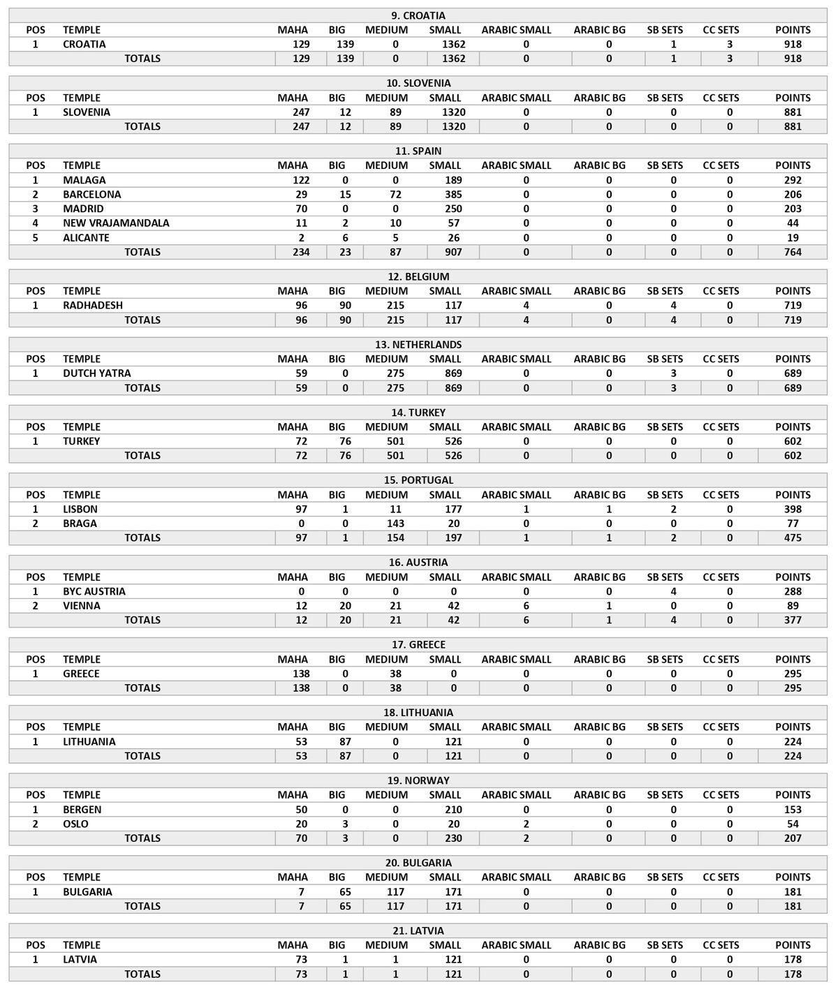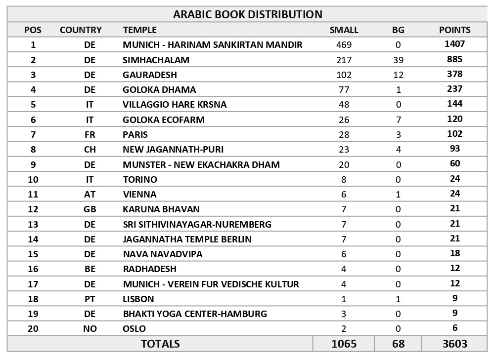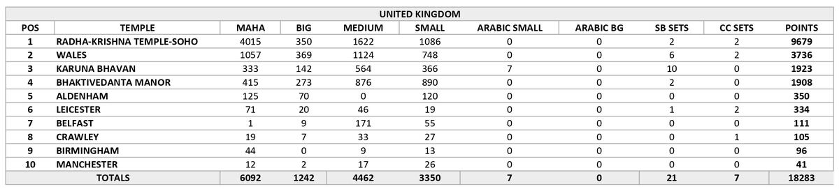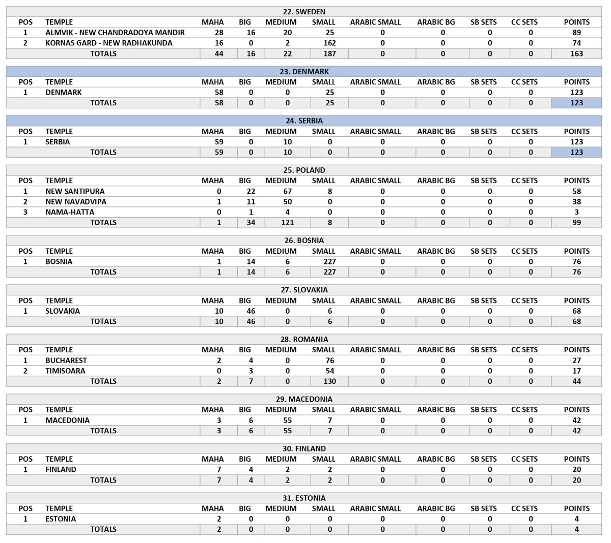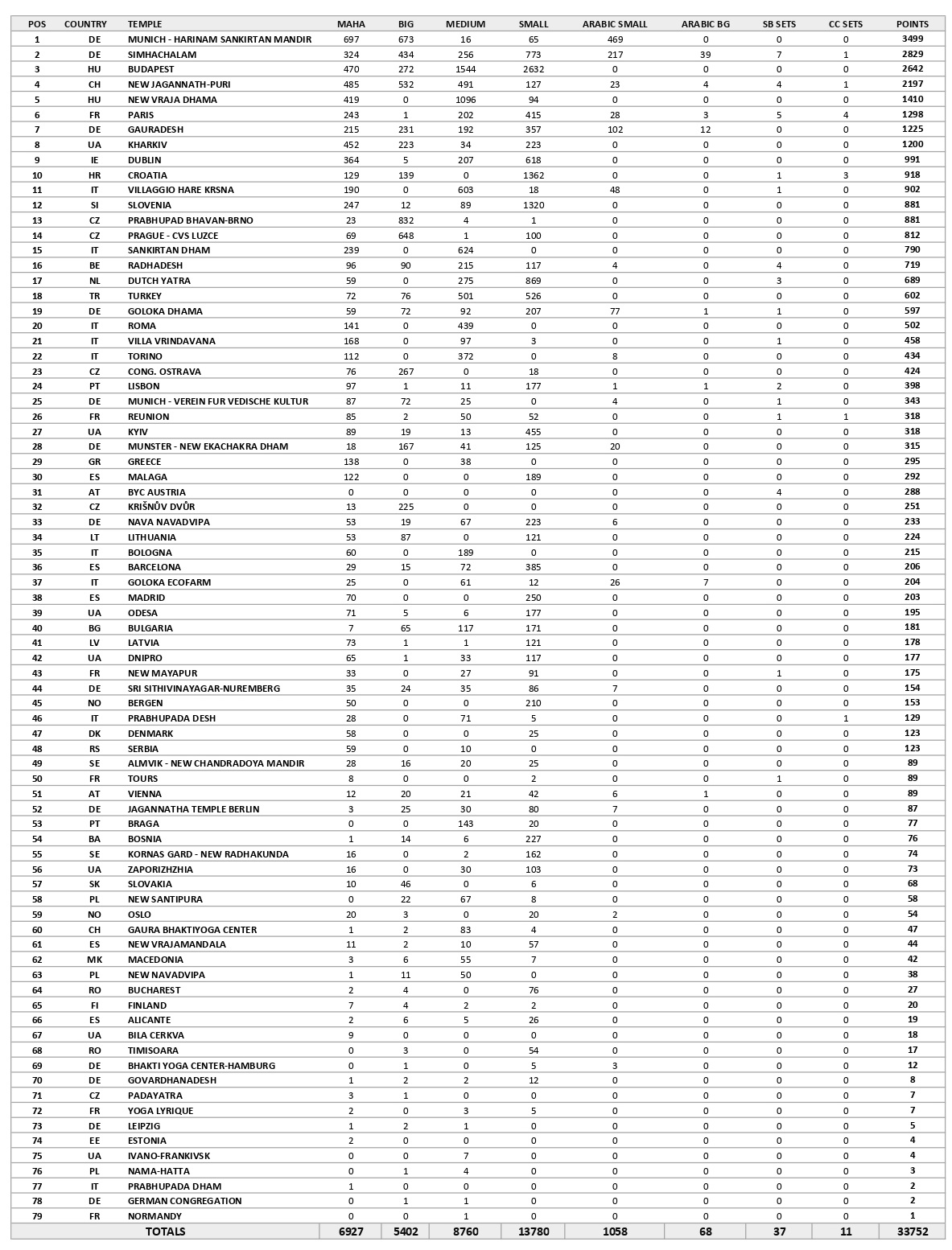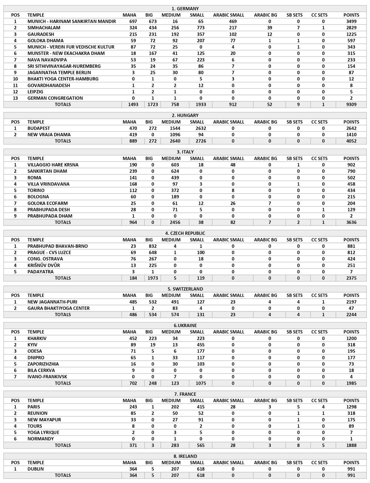 As always, the UK yatra is on a whole other level with Radha Londonisvara yatra leading the way as well as Wales,Scotland and Bhaktivedanta manor doing very well. I am sure that some amazing surprises will be coming from the UK yatra for the Srila Prabhupada marathon. I can sense that they have mounted a campaign that will break all records.