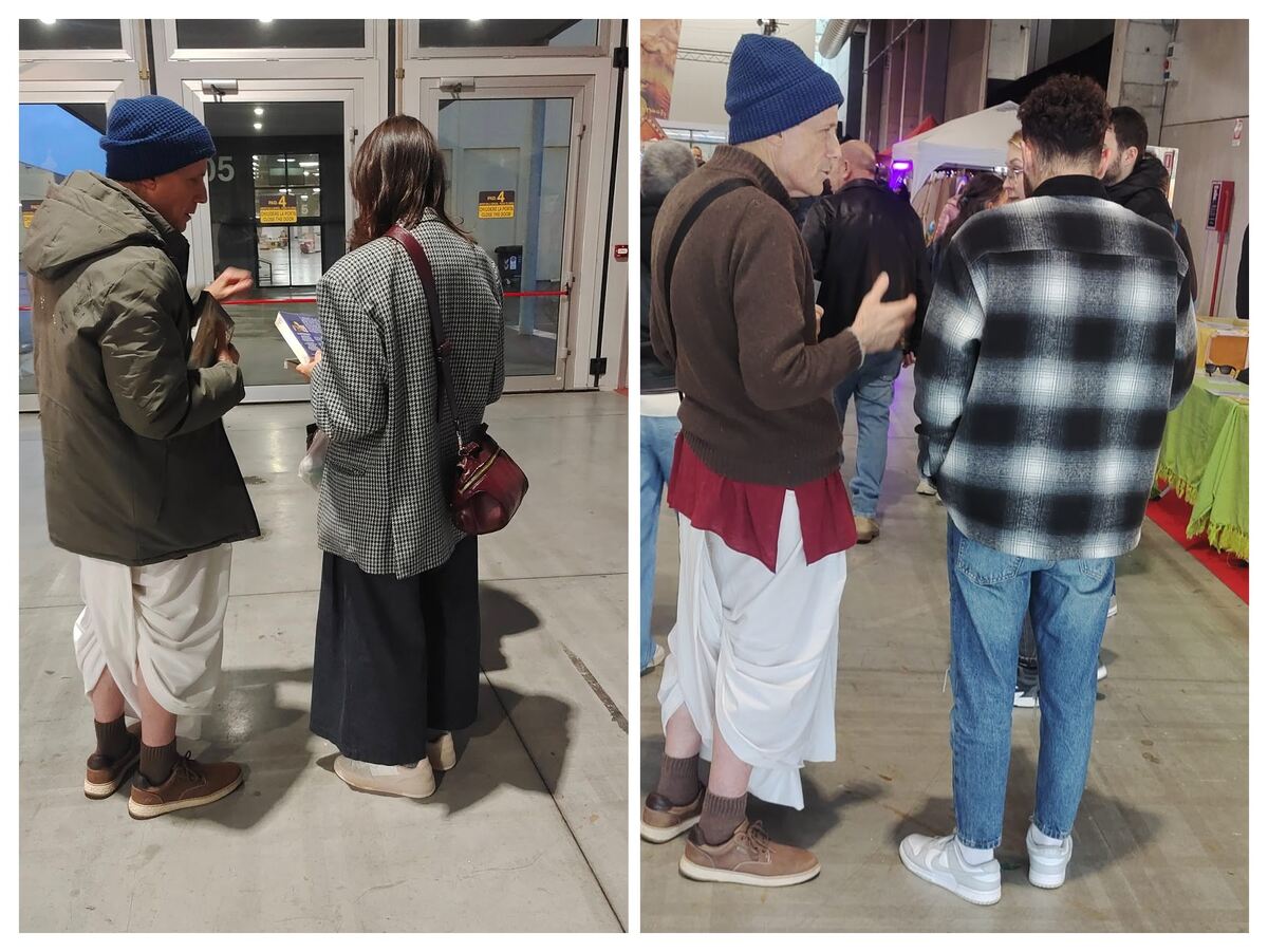 Turns out he was Nepali. Of course, as a Nepali, he knew what to say. "I already have the books." But he truly did. He even showed me that he was part of our WhatsApp group ISKCON Lisboa!