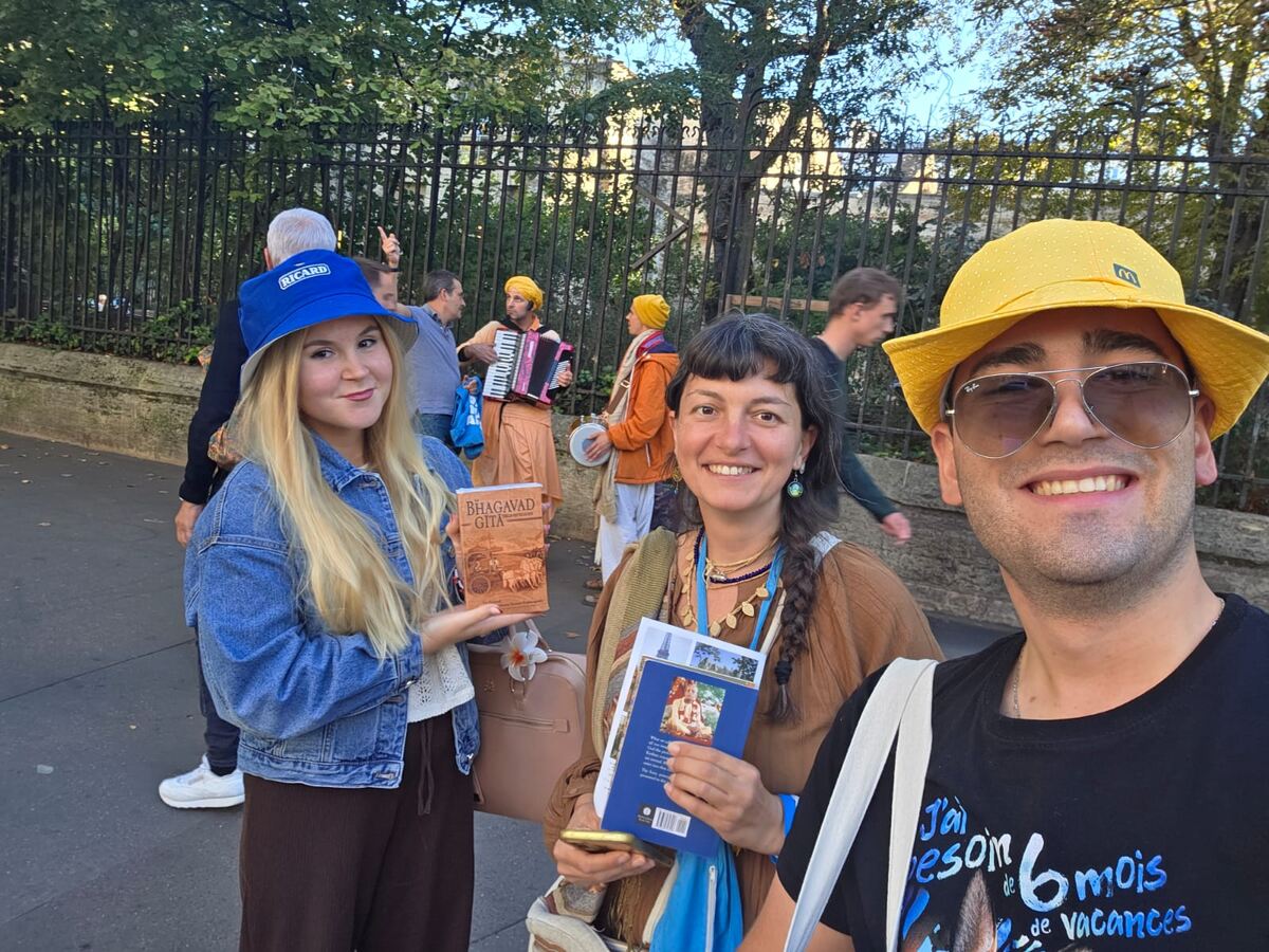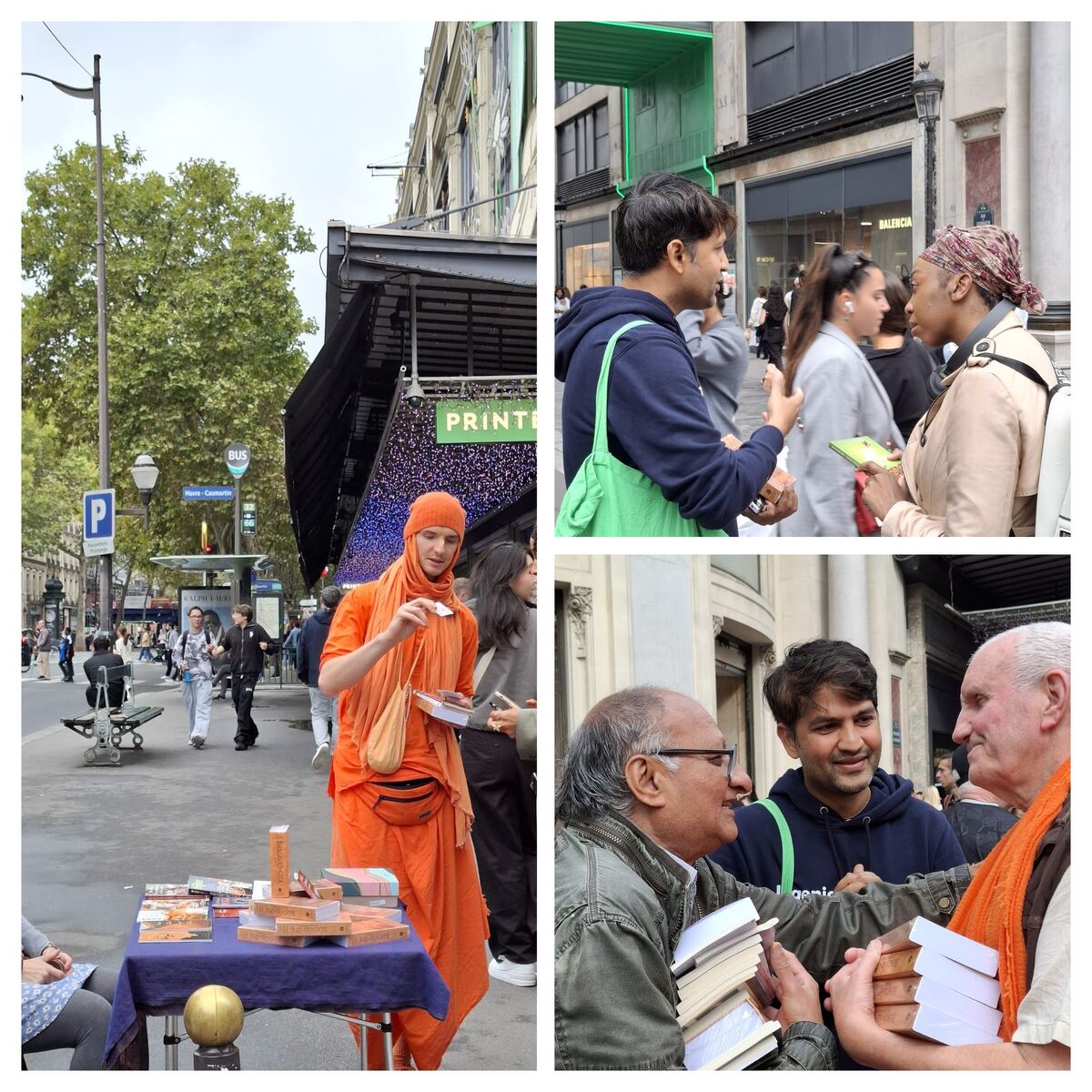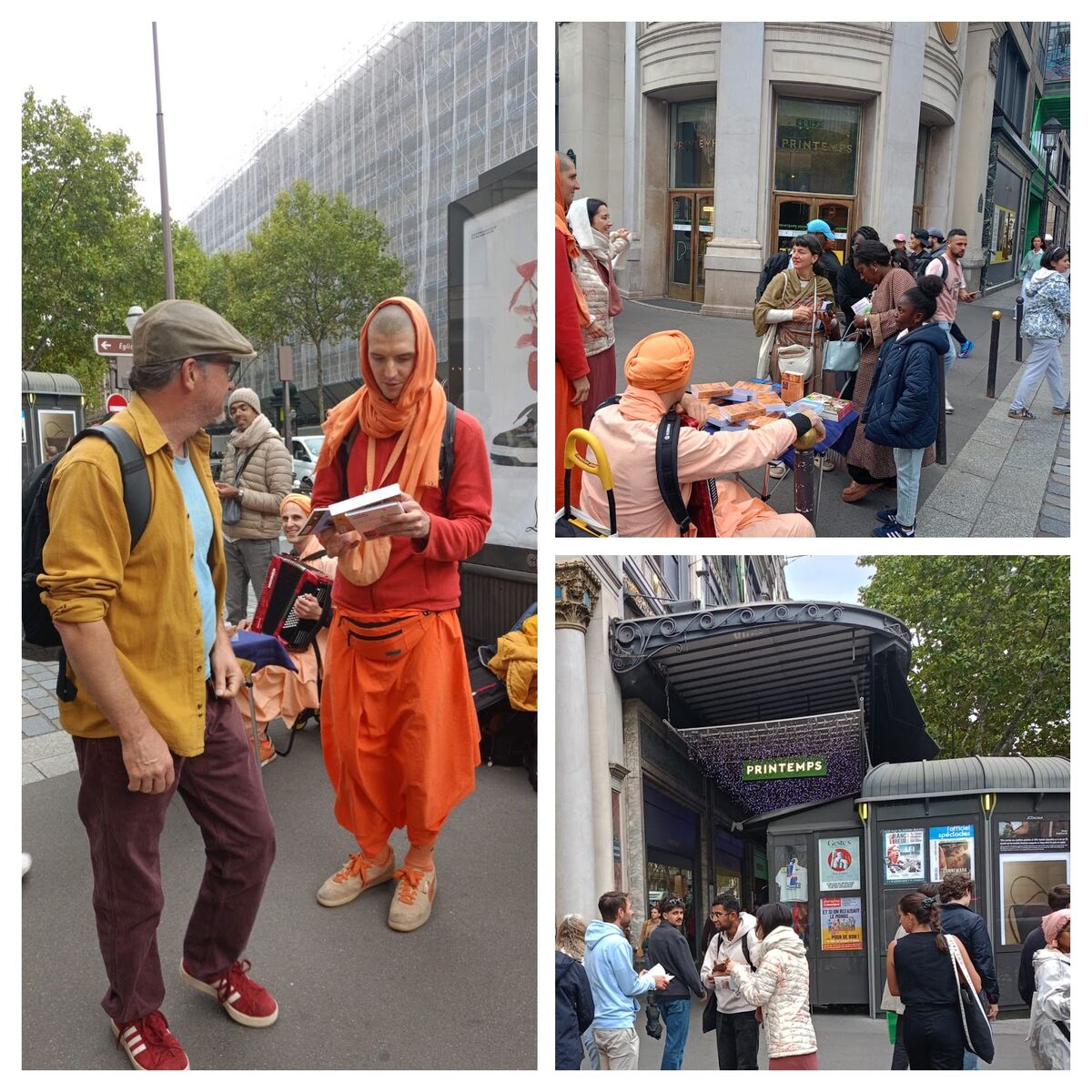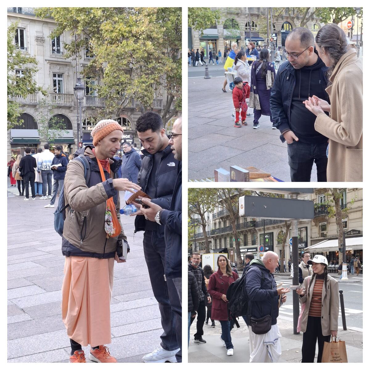 And I remembered George harissons song "I really want to see you, I really want to be with you" A few more nice reciprocations, Then also some leaving a bit empty when they start saying something off. I met one young man from maroco who came to Paris for work but after one week decided to go back home. Initially he presented himself as agnostic and that he tried to listen to all faiths but in the end he decided Allah is the best. Before that I showed him keshava swamis card and he said he has seen him already in a podcast. :) The young girl is from London and is here only a couple of days. Going to nice for a marathon and from a sick background is very happy to receive the isopanisad as it will help her see god in everything and the connection between her faith and the Vedic perspective. William, with the many books, was just standing behind us in the stairs while going to the metro. I felt an impulse to start a conversation and ended up talking really long . He was describing his experiences and life, work, realisations How we should be an instrument of God when we align and be responsive of our own happiness and not expect it from others etc. He got his bag filled with books and resources to embark on this journey. And I still pray how to strengthen my faith to see krishna as a person. Every Thursday we facilitate think gita online in greek and as we go, it gets more and more that we should deepen our realisation to be able to transfer that to the participants. One of them openly shared that he can perceive God as energy but its very difficult to see him as a person. And within this impersonal culture we grow in it is indeed hard to see To decolonise ourselves from impersonalism and have this loving reciprocation. We should be alert and open to see Krishna arrangement and trust his plan instead of our own speculations. One more book was given in the train station, and one more prayer to develop more faith 🙏