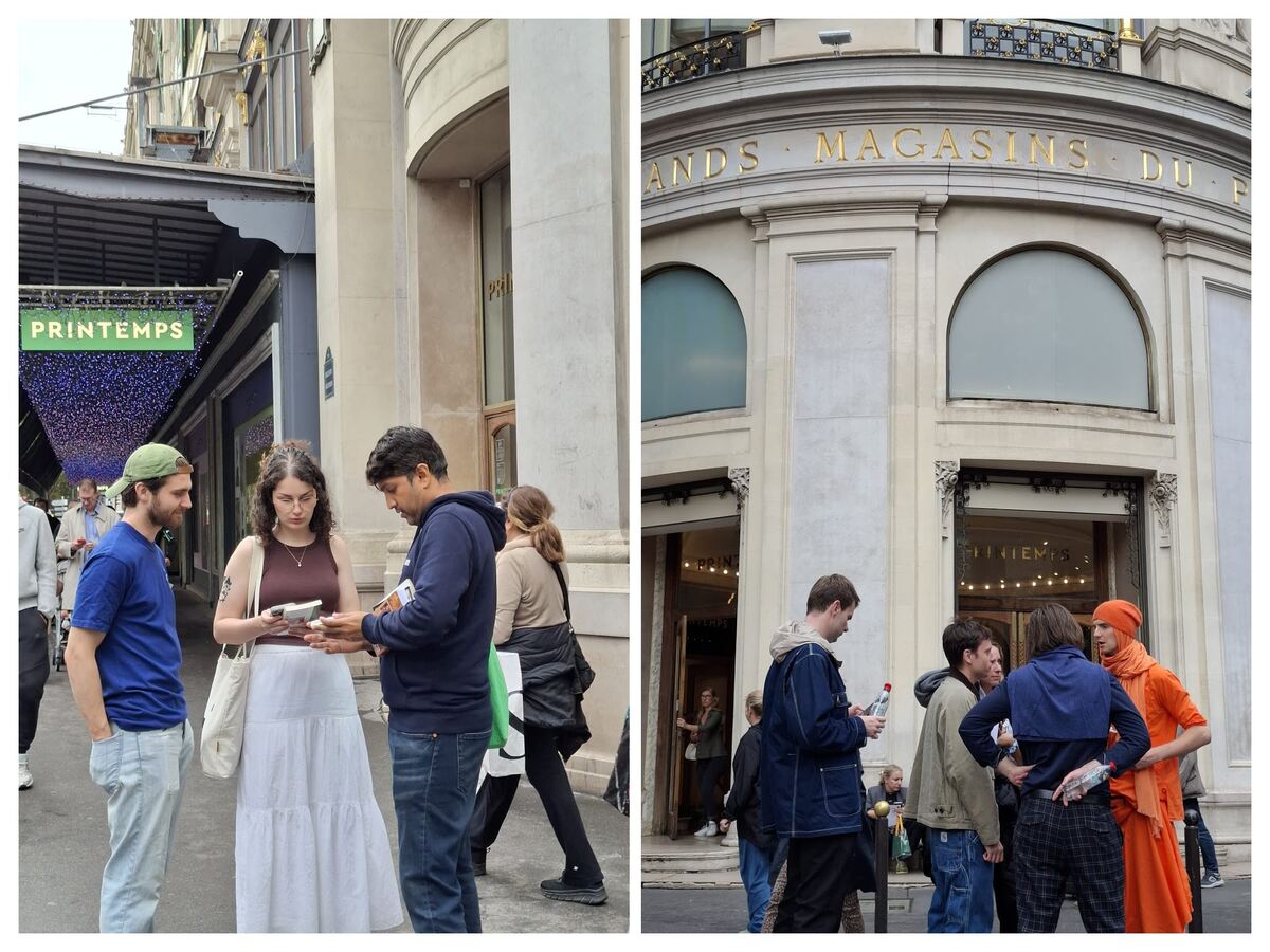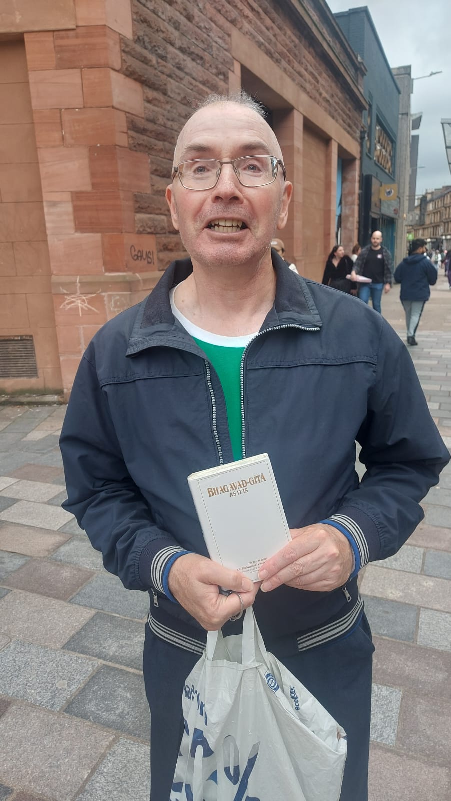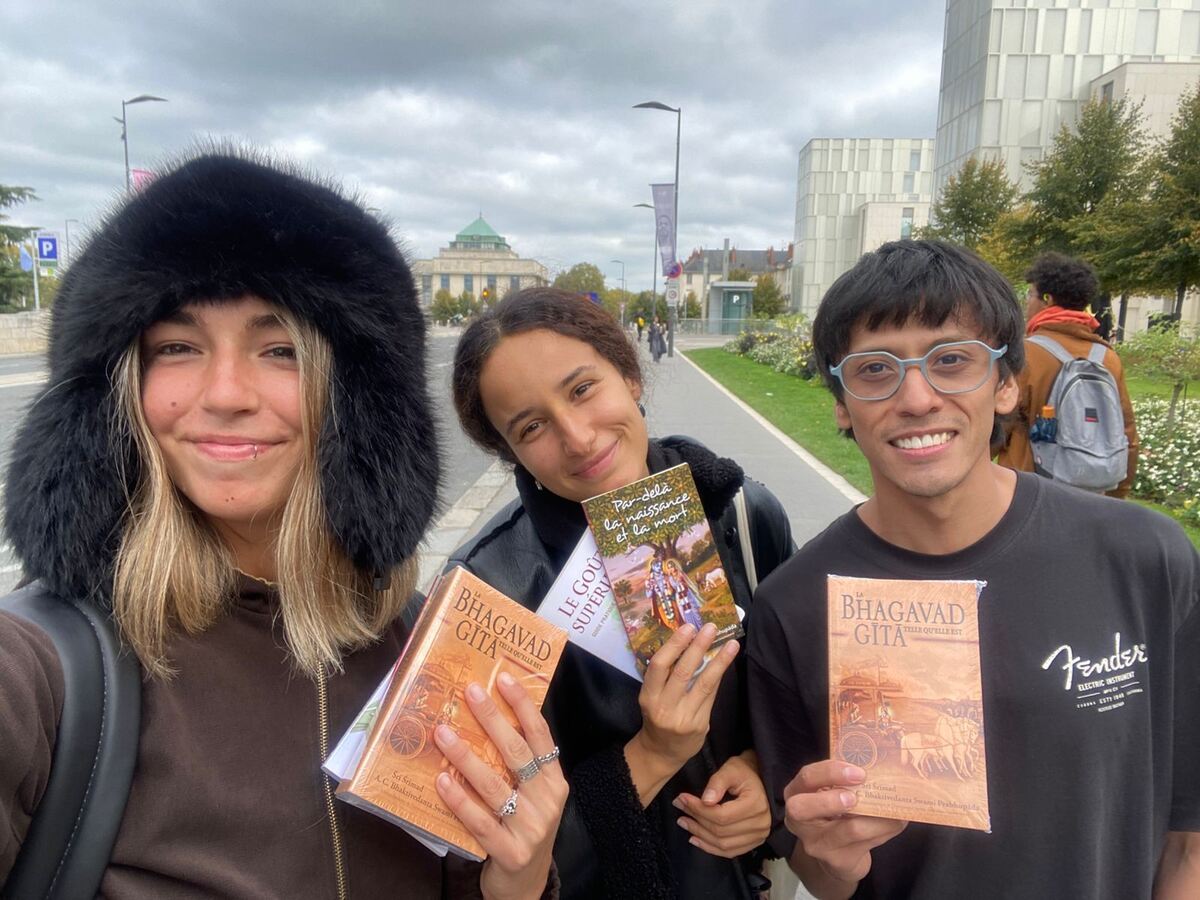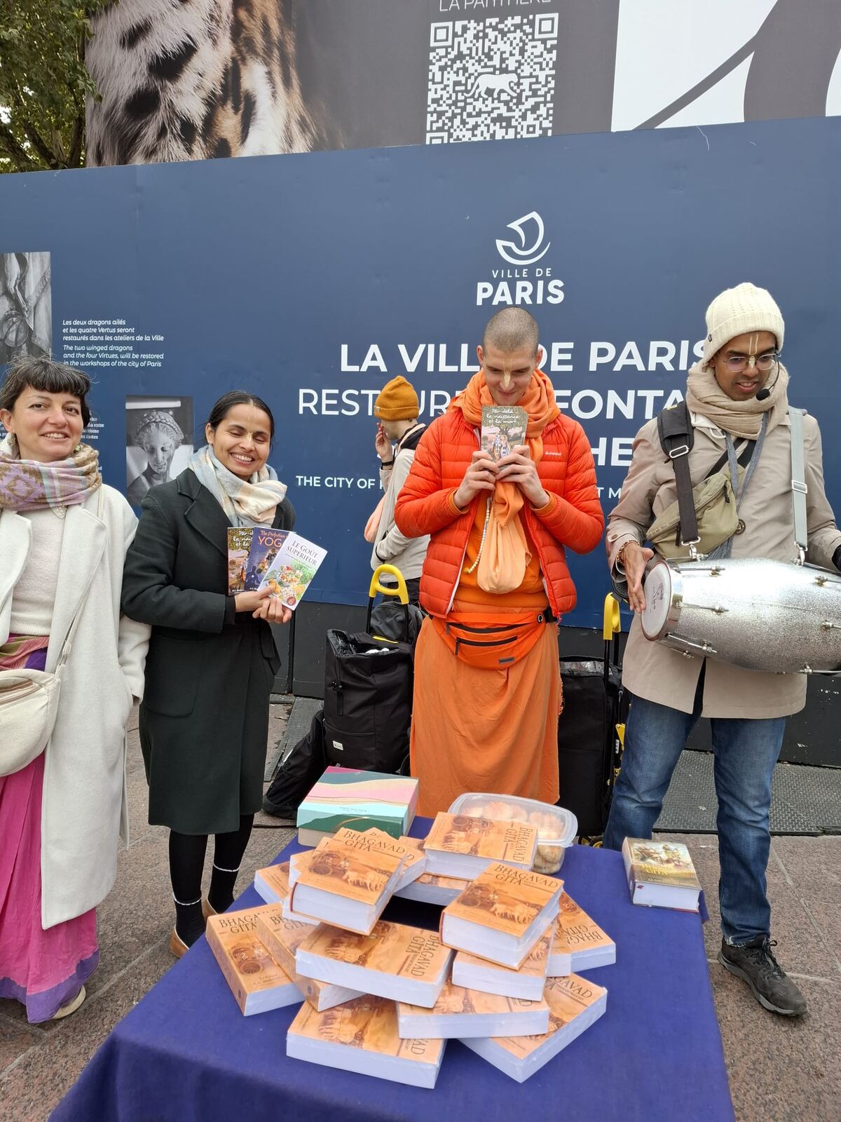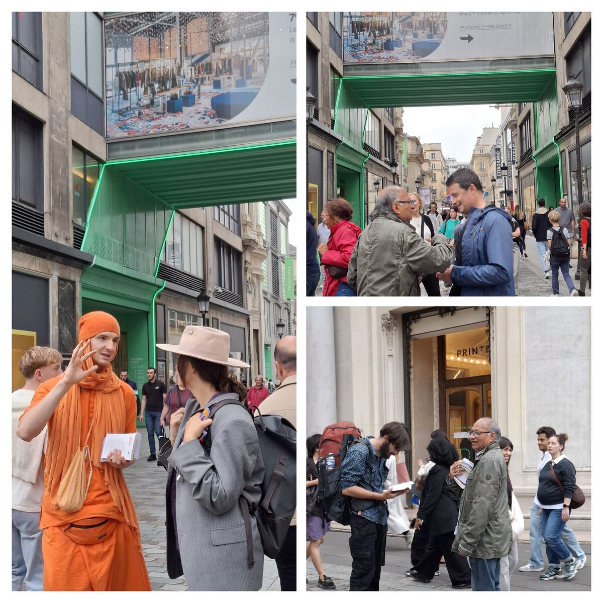 And I remembered George harissons song "I really want to see you, I really want to be with you" A few more nice reciprocations, Then also some leaving a bit empty when they start saying something off. I met one young man from maroco who came to Paris for work but after one week decided to go back home. Initially he presented himself as agnostic and that he tried to listen to all faiths but in the end he decided Allah is the best. Before that I showed him keshava swamis card and he said he has seen him already in a podcast. :) The young girl is from London and is here only a couple of days. Going to nice for a marathon and from a sick background is very happy to receive the isopanisad as it will help her see god in everything and the connection between her faith and the Vedic perspective. William, with the many books, was just standing behind us in the stairs while going to the metro. I felt an impulse to start a conversation and ended up talking really long . He was describing his experiences and life, work, realisations How we should be an instrument of God when we align and be responsive of our own happiness and not expect it from others etc. He got his bag filled with books and resources to embark on this journey. And I still pray how to strengthen my faith to see krishna as a person. Every Thursday we facilitate think gita online in greek and as we go, it gets more and more that we should deepen our realisation to be able to transfer that to the participants. One of them openly shared that he can perceive God as energy but its very difficult to see him as a person. And within this impersonal culture we grow in it is indeed hard to see To decolonise ourselves from impersonalism and have this loving reciprocation. We should be alert and open to see Krishna arrangement and trust his plan instead of our own speculations. One more book was given in the train station, and one more prayer to develop more faith 🙏
