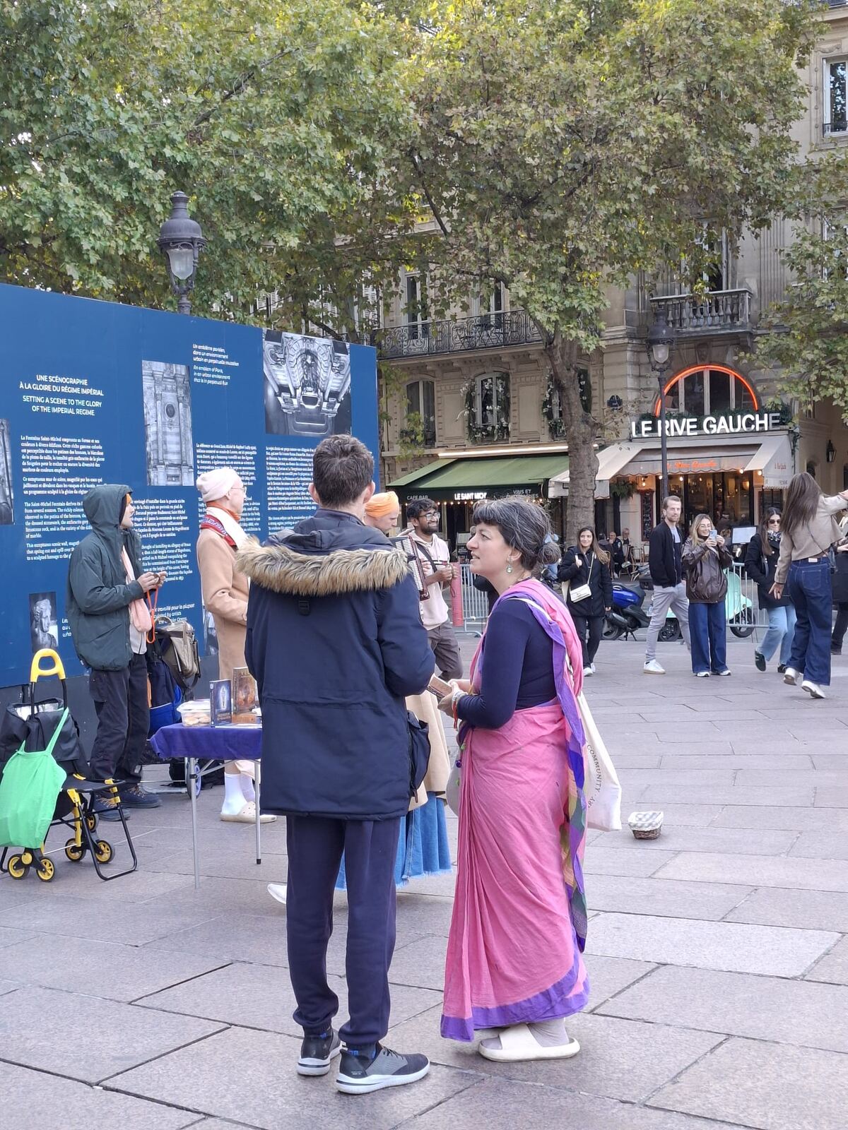 Even the man selling honey was fond of the nectar of the holy name. Especially many children and locals heard the mantra and participated in one way or the other. We also distributed books and flyers about cow protection picturing Govinda, the Lord of the senses and the cows. For over two hours, the nectar flowed, four devotees chanted for a total of eight hours and Sarcelles received special Mercy by Śrī Śrī Nitai-Saci-Suta.