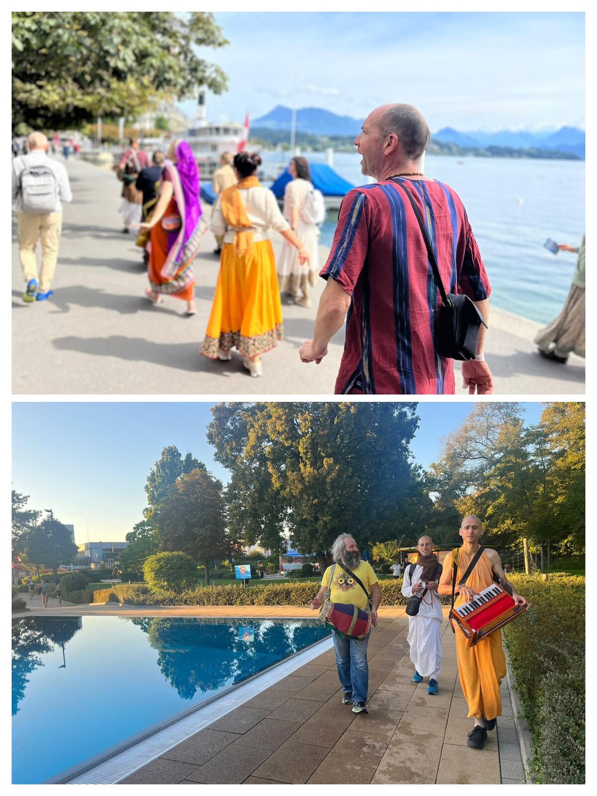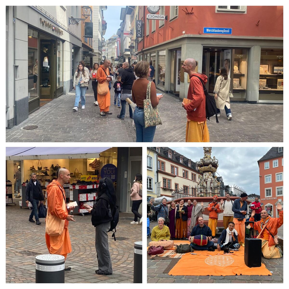 We decided to go for a Harinama in the City and went through parks and the pedestrian shopping area.