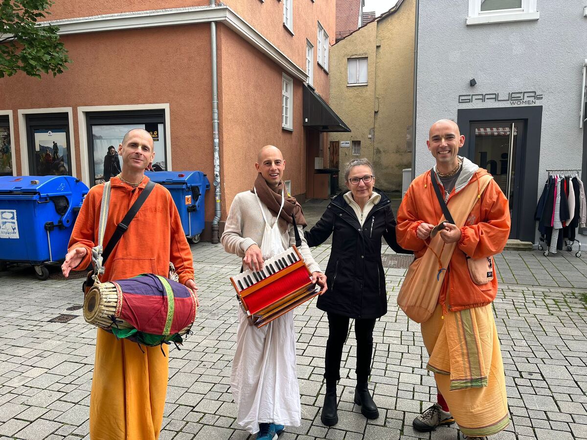 Later we distributed 7 more small books and in a park a group of children was following our Harinama Sankirtan. We invited a Mataji from a neighbouring city called Olha. She once send me a message after I distributed a Bhagavad Gita to her friend and she wrote me if I could send her one. Later I sent her also a Beadbag, Beads and a Srīmad Bhagavatam Set. She was several times in Simhachalam and now the third time at our house programme. My mother invited a big group of colleagues from her workplace at Hugo Boss. She is cultivating them in her own pace feeding them with Maha Cookies from Simhachalam and giving them Jaganātha stickers. Some of them were already at programmes, but today was the biggest group. Krpā-Sindhu Prabhu gave a brilliant lecture and we were discussing the personal form of Krsna, the difference to Christianity and meat-eating and the knowledge behind Prasadam. Steffi Mataji asked brilliant questions and a long, deep and satisfying discussion evolved. At the end of the Harinama I stumbled into my old best friend and invited him also to come. He came late in the middle of the lecture and left early. It seems he became agitated; later he said he became irritated as Krpā-Sindhu Prabhu made the point of connecting the genocide of the Nazis with Karma. After a Kirtan with Puja we honoured the Ekadasi feast and everyone was very happy and satisfied. Quinoa, Buckwheat, Carot Halava, Pumpkin Soup, Creamy and hot Potatoe-Cauliflower-Spinach Sabji, Mango Lassi, Beetroot-Apple Salad and Cucumber Raita.