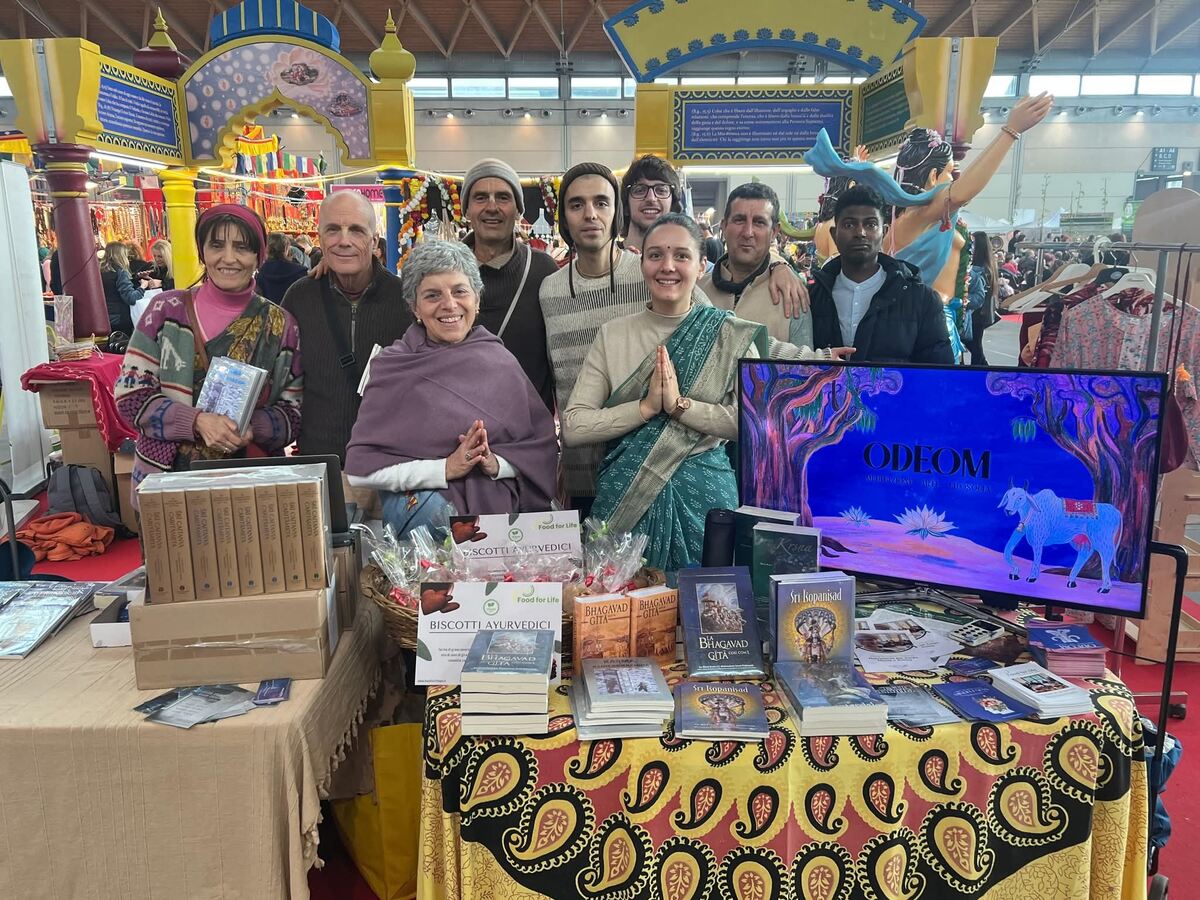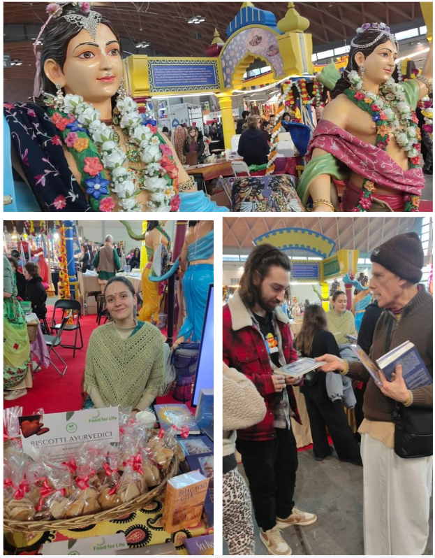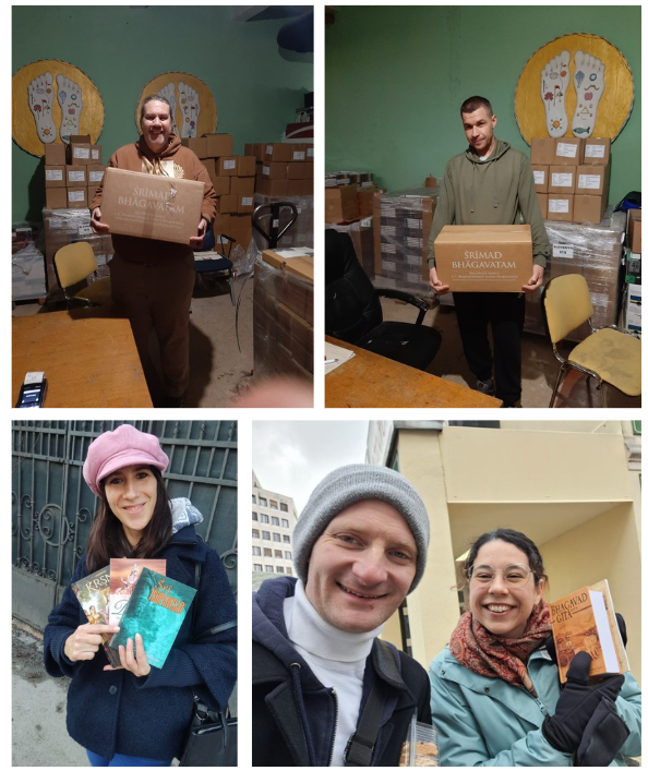 Vorrei citare "Il Libro di Krishna". Questo è tratto dalle Preghiere ai Veda personificati. Questa preghiera dei Veda personificati illustra che i Veda servono ad aiutare le anime condizionate a comprendere Krishna. Tutti gli Sruti, o Veda personificati, offrivano glorie al Signore, ripetutamente, cantando Jaya! Jaya! Questo indica che il Signore è il più glorioso. Di tutte le Sue glorie, la più importante è la Sua misericordia incondizionata verso le anime condizionate nel reclamarle dalle grinfie di maya. Questi libri di Srila Prabhupada servono ad aiutare le anime condizionate a liberarsi da ogni sofferenza e a tornare a casa, da Dio, quindi distribuire questi libri è la più grande opera di beneficenza. Quanto di seguito è tratto dallo SB 10-1-14, che spiega: "In questo verso le parole krsna-caritam kali-kalmassa-ghnam indicano che le attività del Signore Krsna sono certamente la più grande panacea per tutte le sofferenze, specialmente in quest'era di Kali. Si dice che nel Kali-yuga le persone hanno solo vite brevi e non hanno alcuna cultura della coscienza spirituale. Se qualcuno è minimamente interessato alla cultura spirituale, viene fuorviato da molti falsi swami e yogi che non fanno riferimento alla Krsna-katha. Pertanto, la maggior parte delle persone è sfortunata e turbata da molte calamità. Srila Vyasadeva ha preparato lo Srimad Bhagawatam su richiesta di Narada Muni per dare sollievo alle persone sofferenti di quest'era (kali kalmasa ghnam). Il movimento per la coscienza di Krsna è seriamente impegnato nell'illuminare le persone attraverso i piacevoli argomenti dello Srimad Bhagawatam. In tutto il mondo, il messaggio dello Srimad Bhagawatam e della Bhagavad Gita viene diffuso e accettato in tutti gli ambiti della vita, specialmente negli ambienti avanzati e istruiti." Questa è la missione di tutti i membri dell'ISKCON: distribuire i libri di Srila Prabhupada per dare sollievo alle anime condizionate sofferenti. Come Prabhupada disse nello SB 10.2.37: "Nel nostro movimento per la coscienza di Krishna, tutte le nostre attività sono concentrate sulla distribuzione della letteratura di Krishna. Questo è molto importante". La nostra missione per aiutare questo mondo è molto chiara e dobbiamo solo rimanere concentrati su questo e tutto andrà a buon fine.