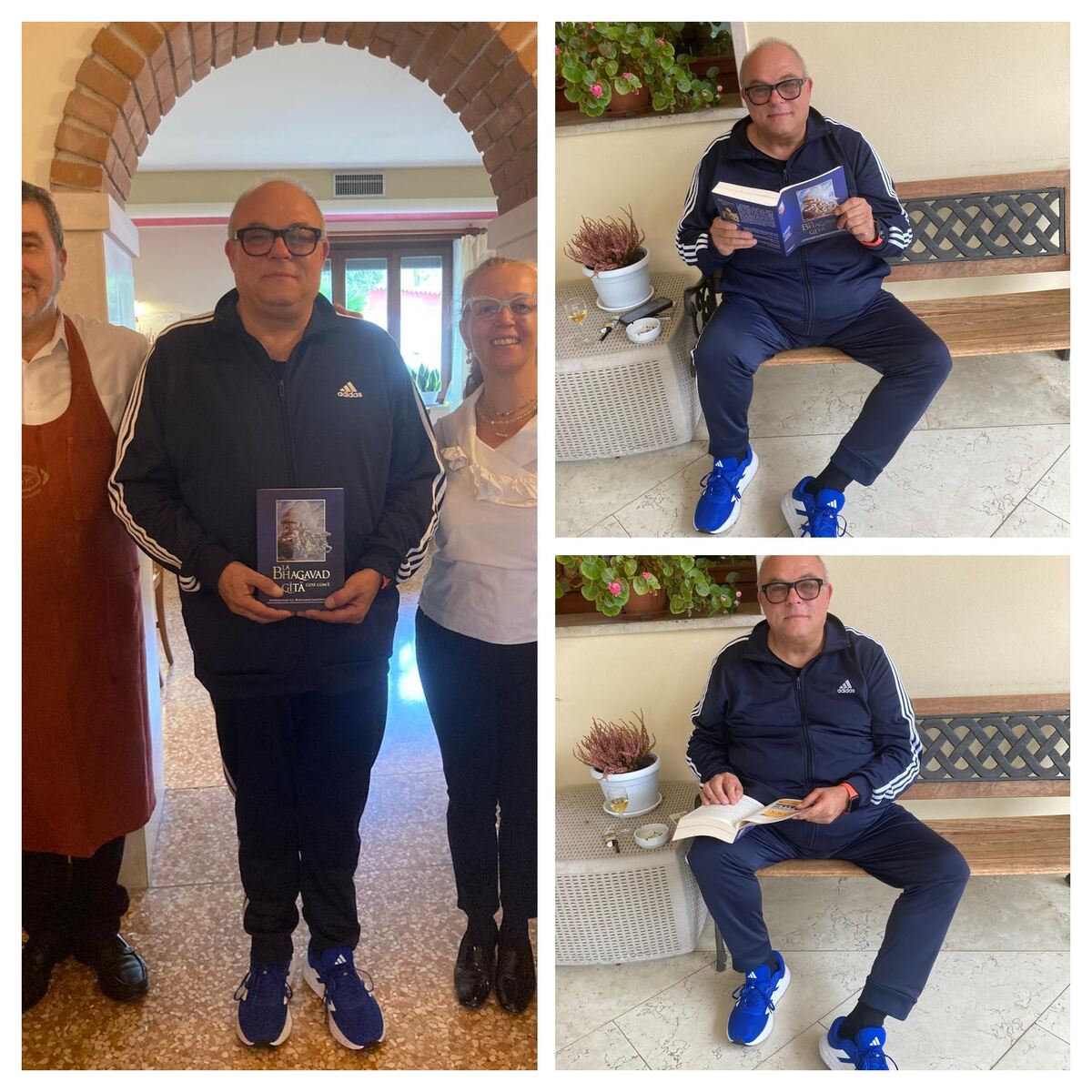 È ora di pranzo. Cammino per trovare un parco dove prendere del Prasada e rilassarmi. Arriva una chiamata, rispondo. Un signore di nome Teresio mi chiede se ci sarà la festa questa domenica e dove ci troviamo. Gli do le risposte e lo invito a passare da noi questa domenica. Arrivo in un bel parchetto, mi siedo all’ombra di un albero e prendo Prasada. Verso la fine del pranzo una fresca brezza sembra suggerire che l’autunno è alle porte; perciò, mi alzo e mi vado a sedere su di una panchina al sole. Inizio a leggere le scritture, e intanto il parco inizia a popolarsi un po’. Un signore si siede su una panchina di fronte a me e inizia a leggere dei libri. Avverto che alza lo sguardo verso di me ogni tanto. Dopo poco vedo che avanza di un metro e si siede su un muretto adiacente alla panchina. Noto ancora che mi lancia qualche sguardo. Ad un certo punto mi chiede, in modo quasi estemporaneo: “Sei un Hare Krishna?” “Si” rispondo. Allora si alza, avvicinandosi ancora un po’ e mostrandomi quali libri stava leggendo in quel momento: “Il nettare della devozione” e “Incontro con il maestro spirituale”. Rimango allibito.Mi spiega che è molto interessato alla filosofia Vaisnava, e che una volta veniva al centro. A quel punto gli chiedo: “Ma tu sei Teresio? Mi hai chiamato prima?” “Si” mi risponde. Già allibito da prima, sono rimasto completamente esterrefatto. Quante probabilità ci potevano essere che la stessa persona sentita una mezz’ora prima al telefono, in modo così casuale, possa averla trovata seduta di fronte a me, con i libri di Prabhupada per di più! Alla fine, fa una offerta per la Sri Isopanisad, e rimane molto felice di avermi incontrato. Conclude dandomi una benedizione, che in quel momento sembrava provenire da Krsna stesso, talmente era coerente con la mia vita attuale. Lo saluto e mi avvio per iniziareil pomeriggio. Dentro di me penso a quanto nettare dona la distribuzione dei libri, e prego Krishna di riceverne sempre qualche goccia, come questa, in modo tale da rimanere innamorato per sempre di questo meraviglioso servizio.